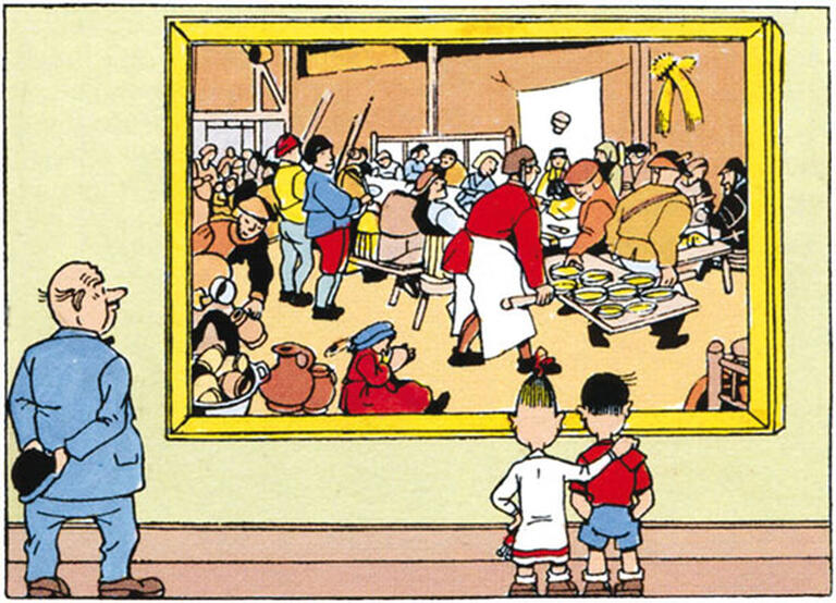 Stripspeciaalzaak meldt: “In de recent verschenen Suske en Wiske-hommage De Anonieme Alchemistregent het knipoogjes naar vroegere verhalen van Willy Vandersteen. Maar ook de door Vandersteen bewonderde Vlaamse schilder Pieter Bruegel de Oude heeft zijn prominente plaatsje gekregen in het verhaal. Luc Morjaeu laste er zelfs enkele bijkomende knipogen in naar Bruegels werk. “