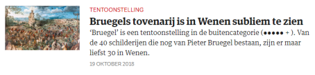 Bruegels tovenarij in Wenen NRC titelt: “Bruegels tovenarij is in Wenen subliem te zien” Dit delen: Klik om te delen op X (Opent in een nieuw venster) X Klik om te delen op Facebook (Opent in een nieuw venster) Facebook Vind-ik-leuk Aan het laden... Gerelateerd
